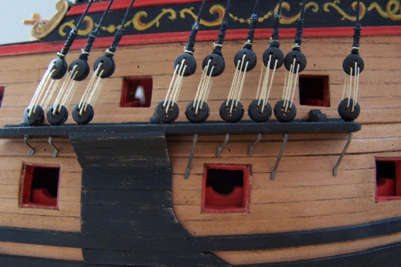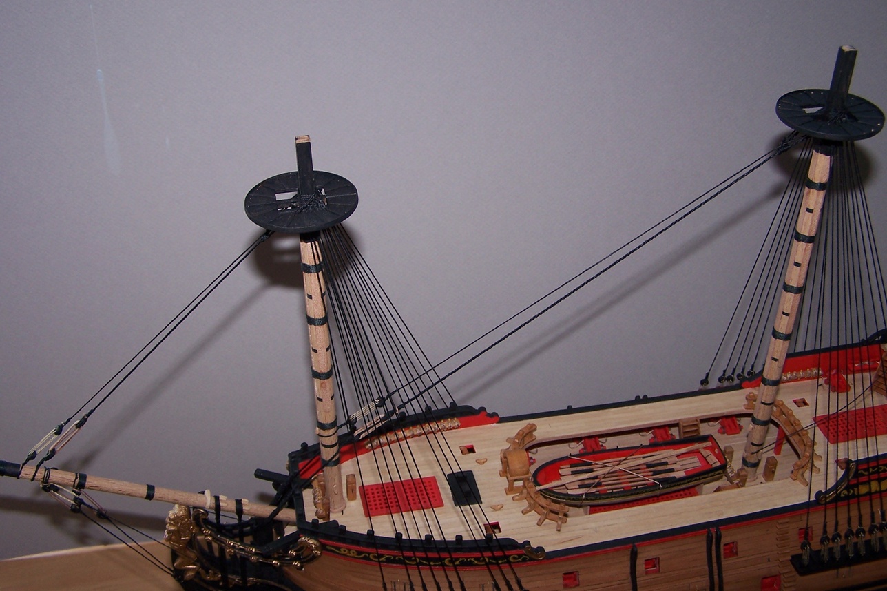 Karol mi chodziło przede wszystkim o pokazanie sposobu zakonczenia sztagu i przyjmuję ze Mirek wie ża takie zblocze powinno być w jego modelu a nie jufers choć po roku 1700 można podejrzewać że rozwiązania brytyjskie i kontynentalne były podobne ale oczywiscie nie jestem przekonany gdyż jeszcze w roku 1690 na kontynencie stosowano jufersy więc w roku 1702 w którym był budowany ten galeon można by je zastosować i nie wiadomo czy byłby to błąd te lata przejsciowe są trudne do określenia i jeżeli sie nie ma dobrych planów to na coś się trzeba zdecydować .