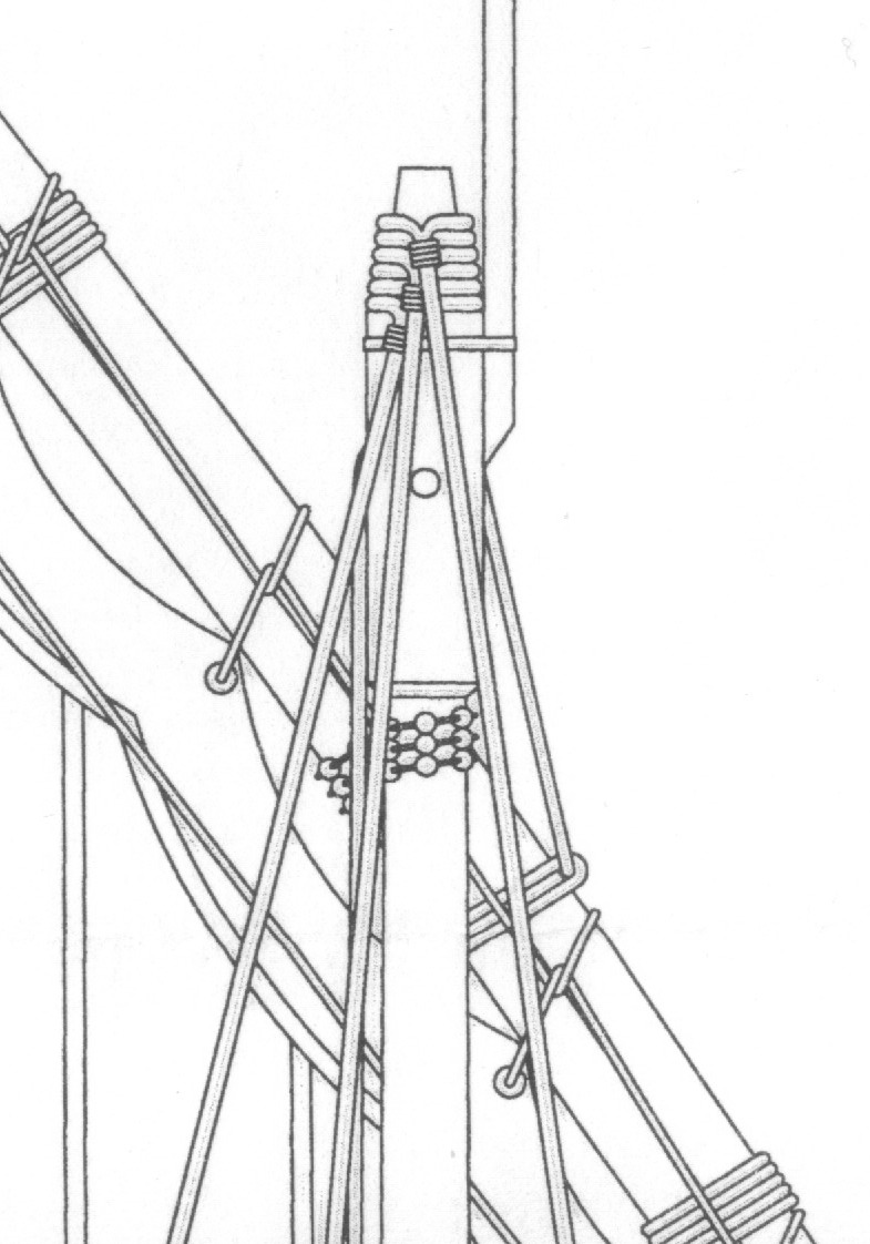 Panowie prosiłbym o pomoc w dwóch sprawach, wiązanie want , oraz mocowanie rej do masztu. Poniżej zamieszczam jak to jest pokazane w planach tej szalupy którą robie, ale nie do końca mi to pasuję wieć prosiłby o rysunki i uwagi. Oczywiście chodzi mi o te pętle na dole, i raki.