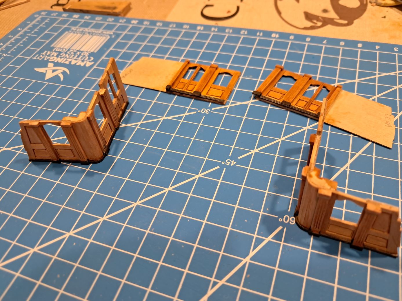 Najlepsze wytrawki okien pozłociłem i osadziłem. Dwa skrajne okna nie są podklejone przezroczystą folią do druku laserowego.