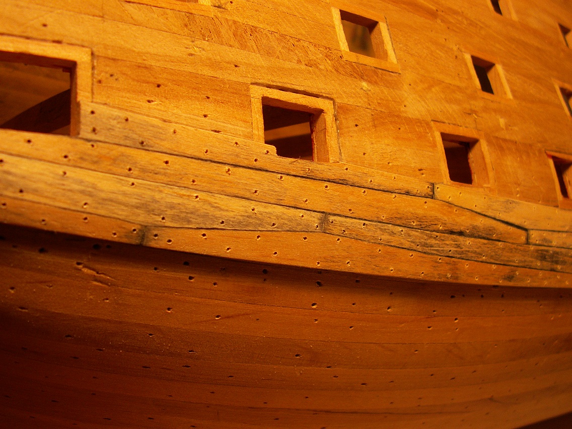 Adam okręty wojenne jak i inne z epoki remontowano więc kołki i mocowania mogły się rozbiegać w trakcie wymiany częściowego poszycia lub jednostkowych desek. Także jak się gdzieś walniesz z kołkami to w tamtym miejscy dodaj kilka i powiedz, że to łata po kuli armatniej