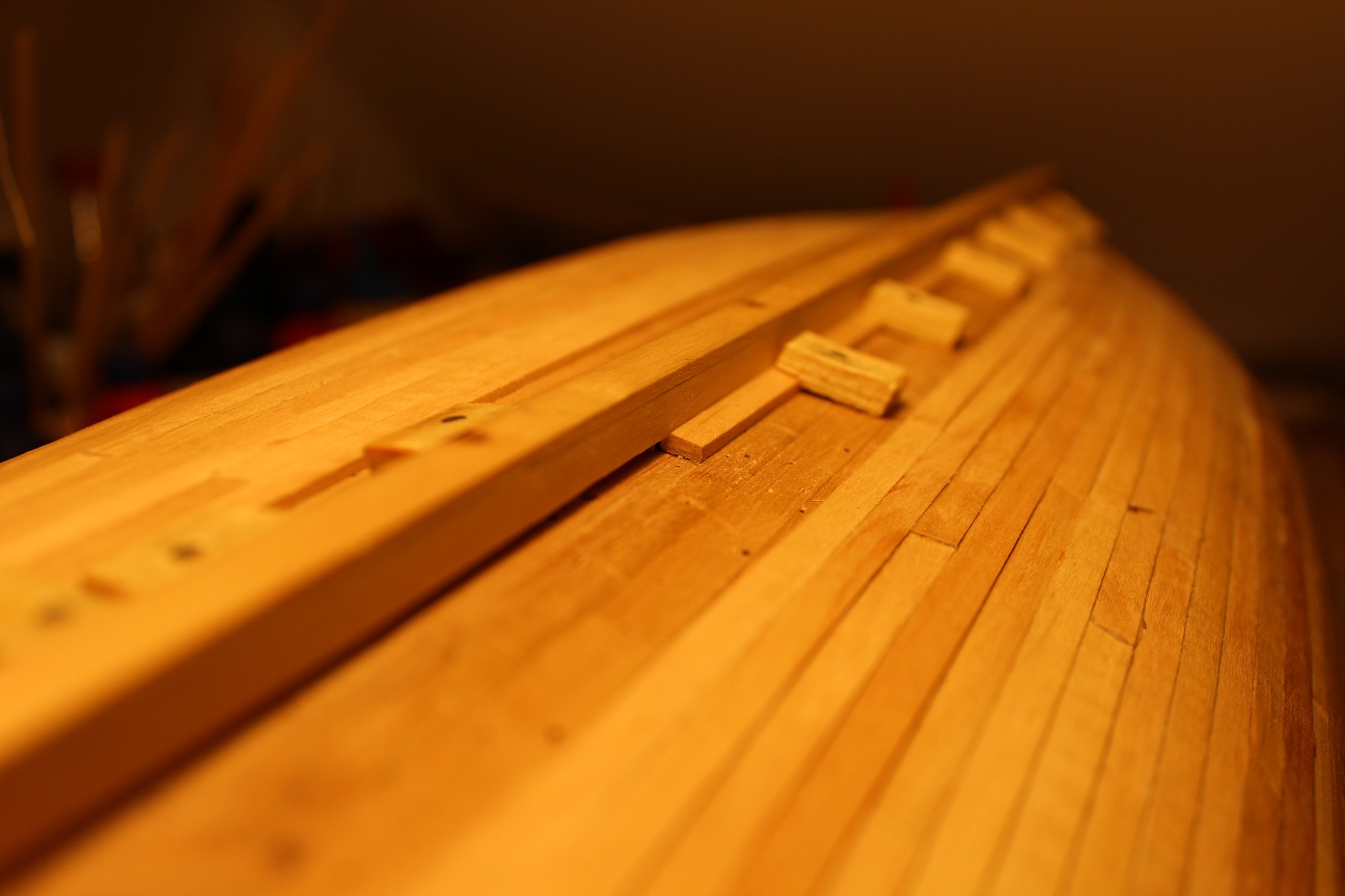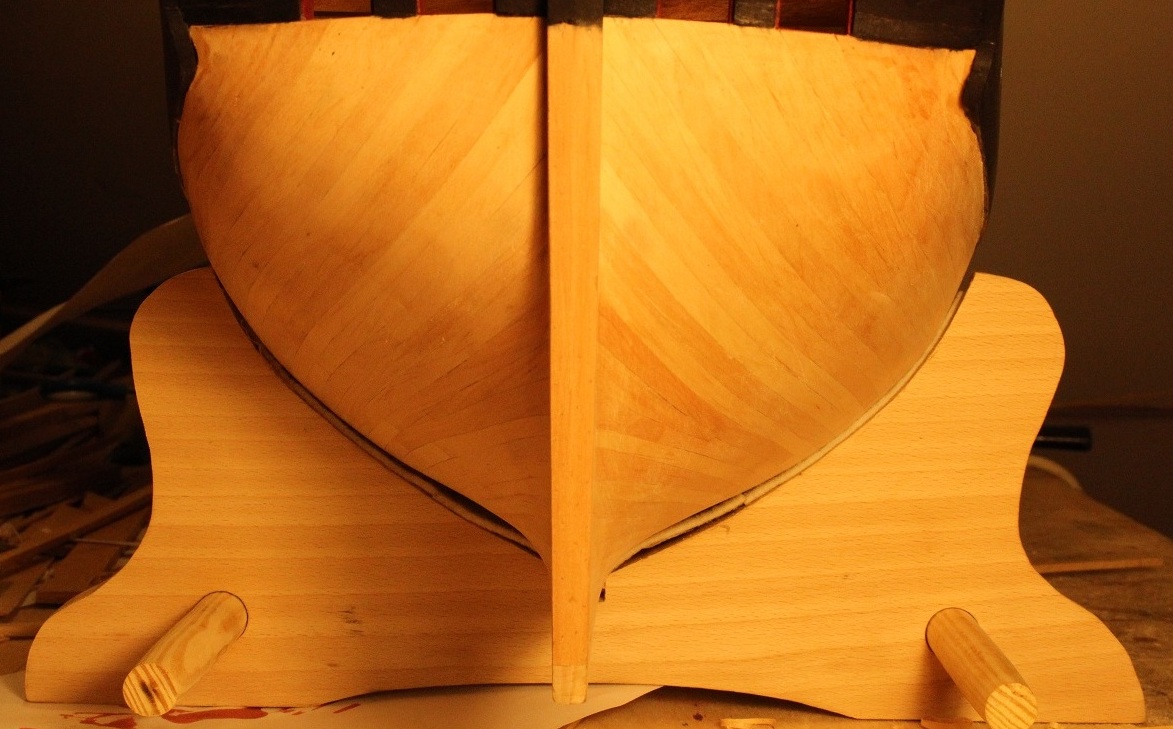 Kaziu, słusznie się domyśliłeś. Ten skos wynika z kształtu wręg. Ty masz szkołę holenderską- tam jest płasko. No niestety, ja zgubiłem ten kształt podczas gładzenia skorupy, więc najprościej było zrobić "cienkiego" rabbet'a, a dechę przy kilu nieco grubszą i lekko zestrugać pod kątem.