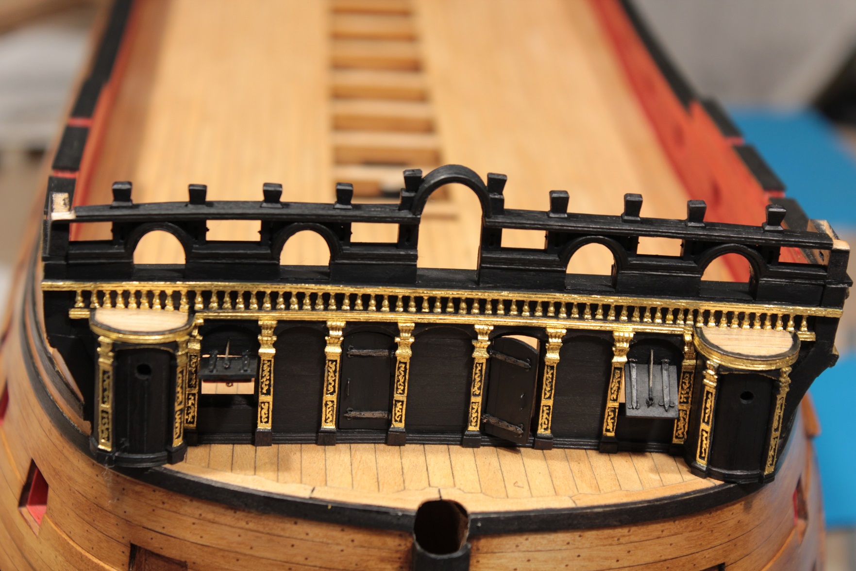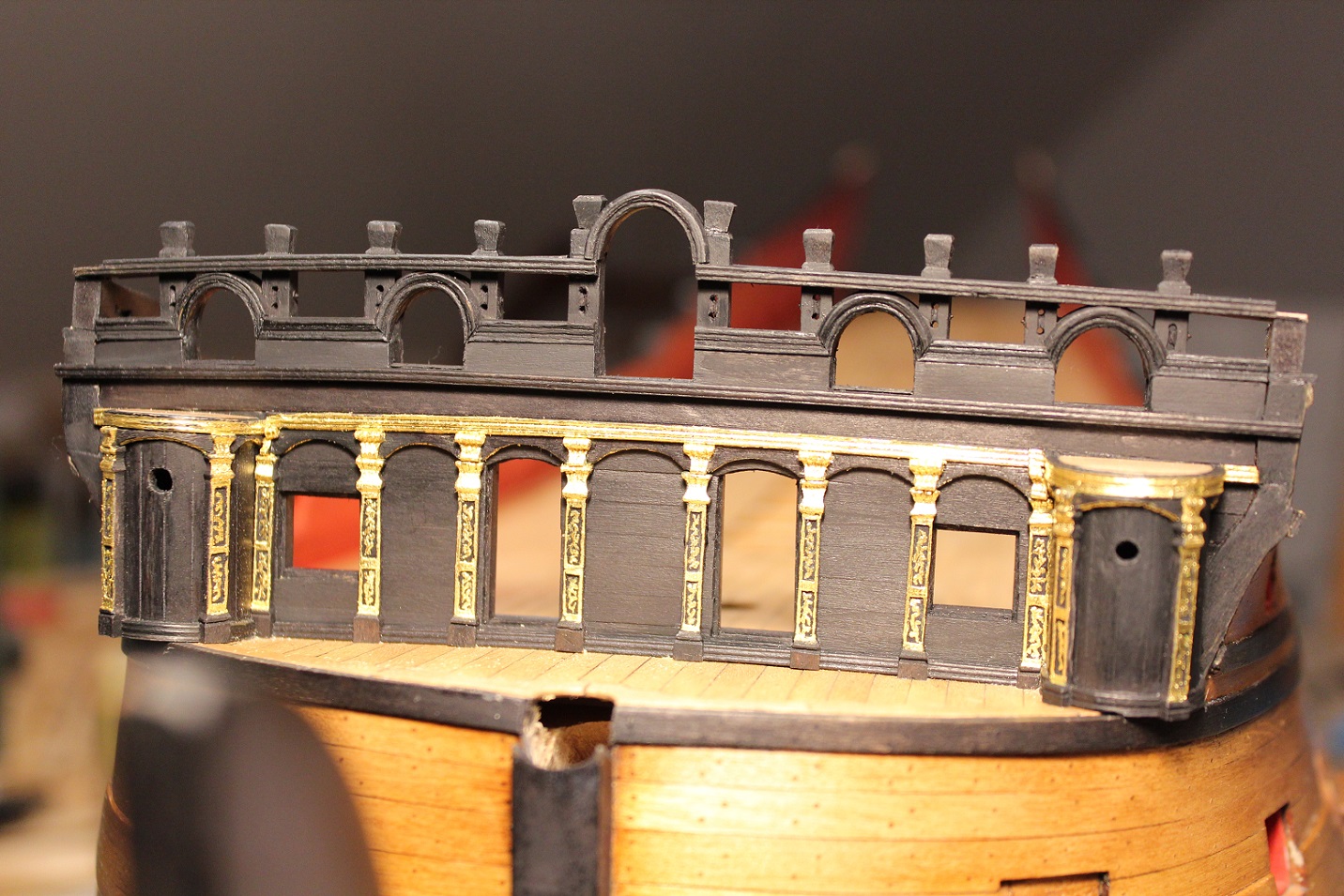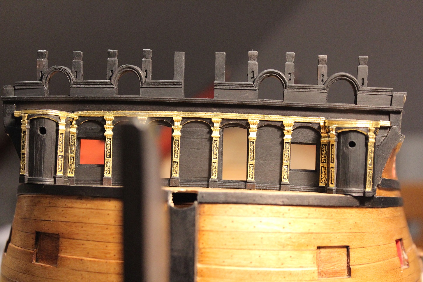 Na dziś koniec dłubaniny. Ogólna zarys kasztelu dziobowego widzianego z dziobu jest skończony. Brakuje tralek, drzwi i klap fur działowych