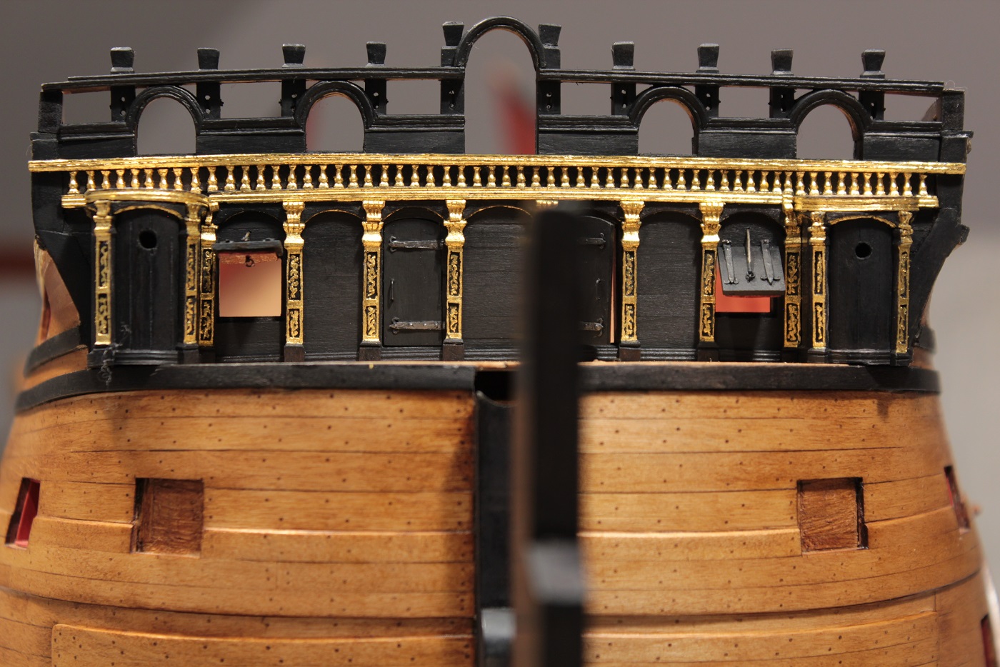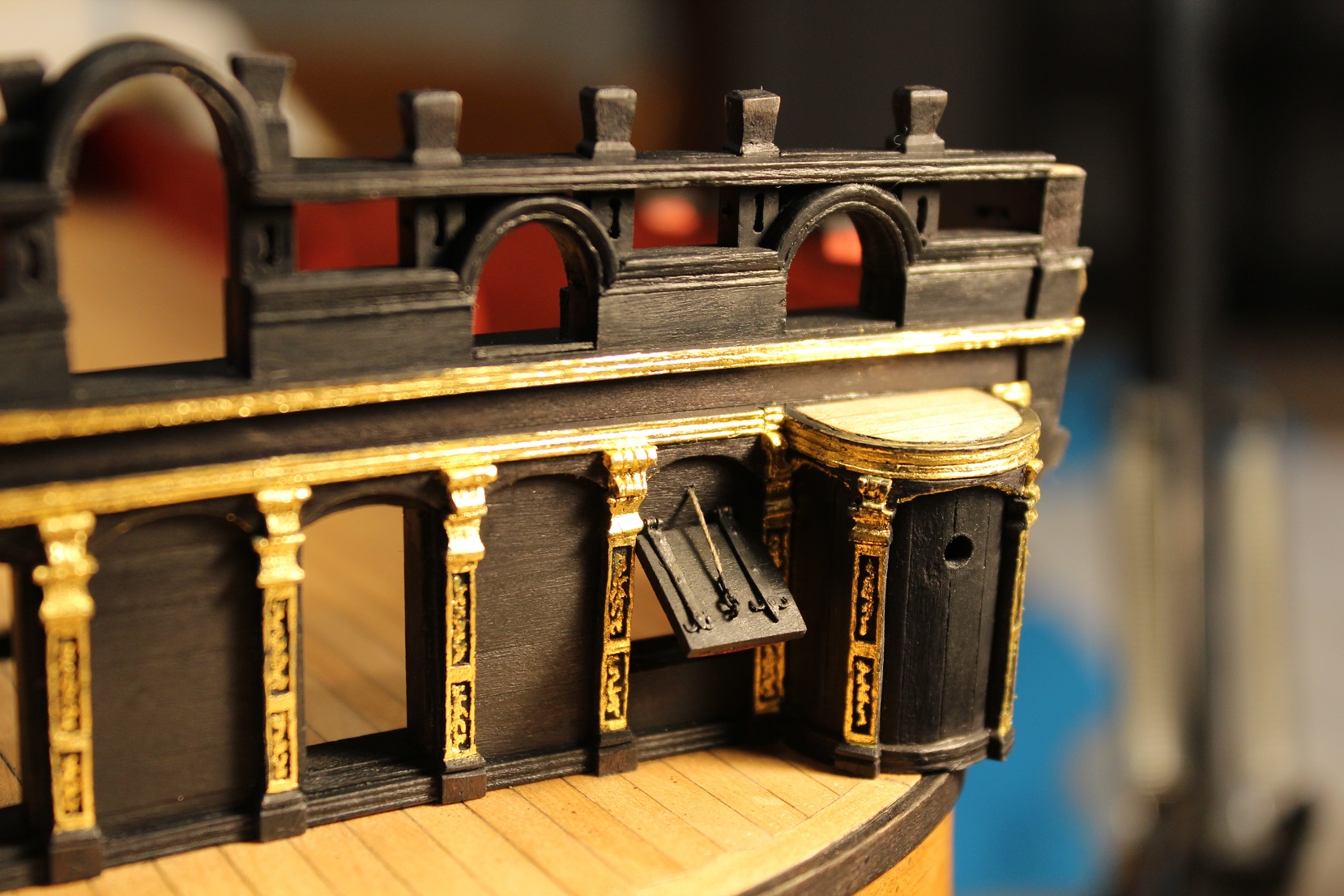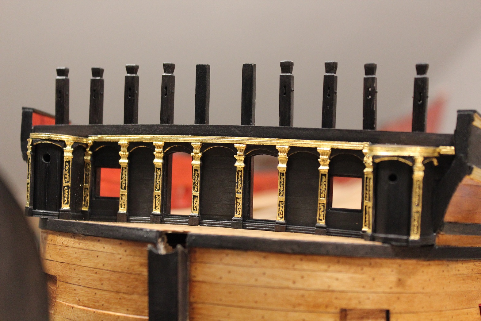 Na dziś koniec dłubaniny. Ogólna zarys kasztelu dziobowego widzianego z dziobu jest skończony. Brakuje tralek, drzwi i klap fur działowych