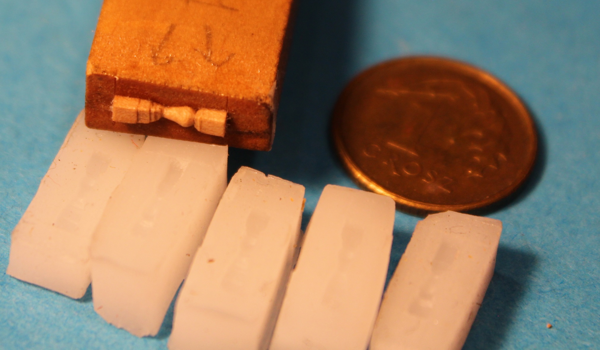 Poniżej fotka z odlewów i kopyta tralki. Jej wysokość jest w granicach 4-5 mm. Robię tralkę według pomysłu Karola (Karexa). Te osoby, które są na Kodze od lat, to wiedzą, że Karol bardzo dużo w swoich relacjach podaje informacji o odlewnictwie i robieniu form. Właśnie z takiego kursu skorzystałem. Dzięki Karol