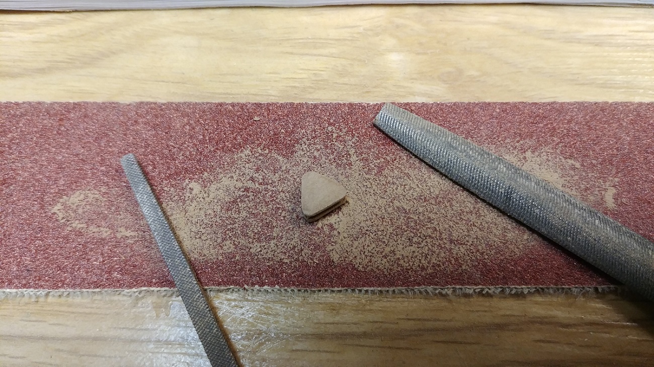 .Pora przejść na drugą stronę ale przedtem jufersiki trójkąciki.Kiedyś kleiłem z forniru teraz naciąłem z listewki.Robota żmudna,ale nie ma tego dużo bo tylko jedna strona.