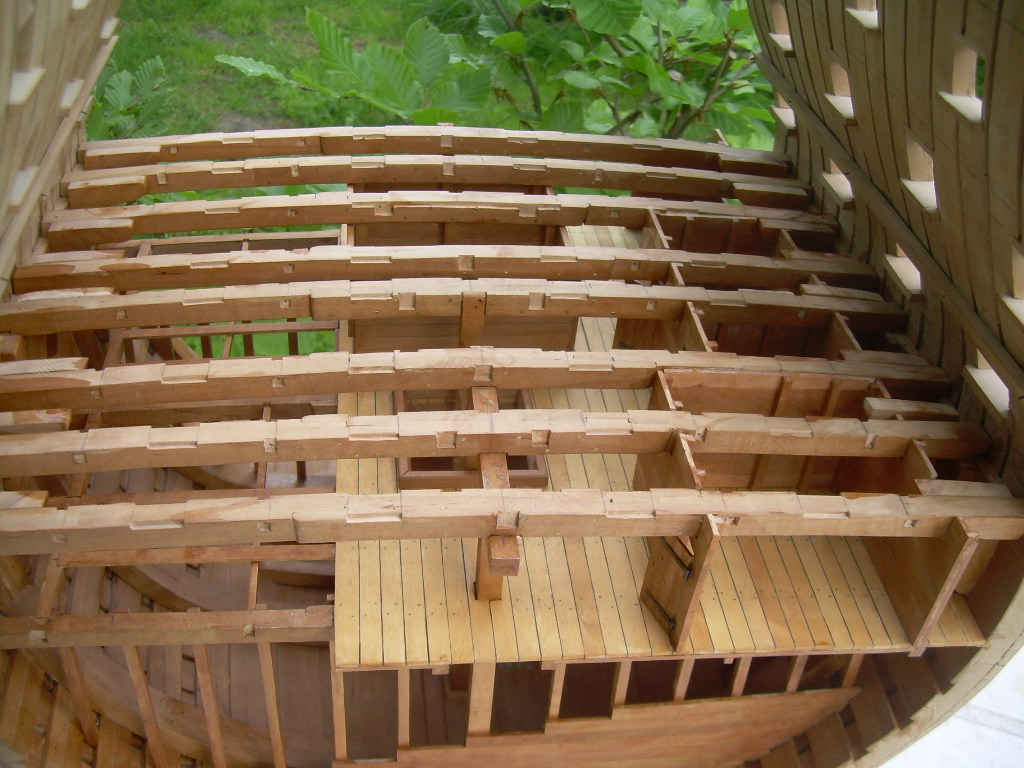Główny pokład działowy jest skończony i można robić armaty i wyposażenie. Doszedłem jednak do wniosku, że musze przygotować konstrukcję kolejnych pokładów. Jak widać na zdjęciach wsporniki wymagają dużo dopasowywania.