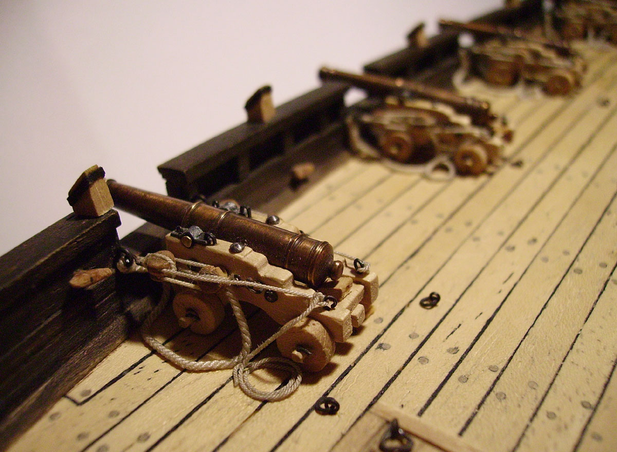 Skończyłem armaty, dodałem linki, bloczki i na pokład.