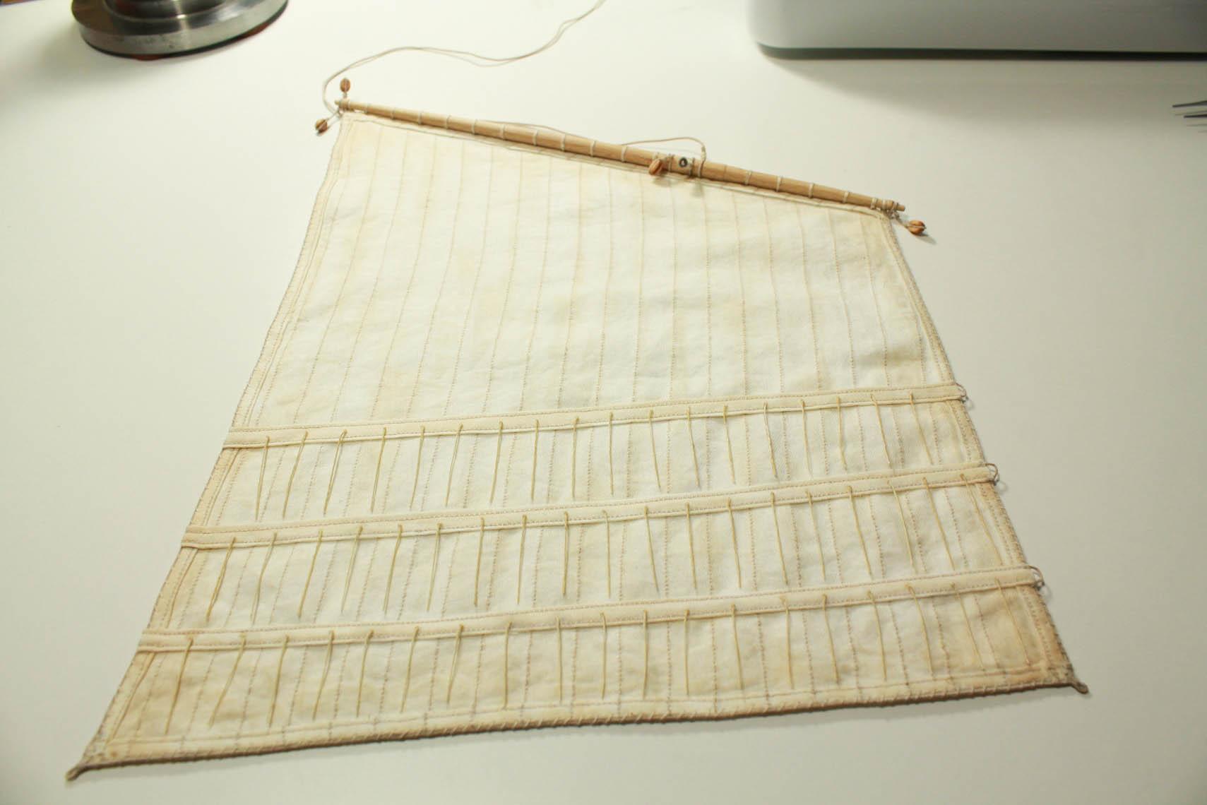 Poza tym w miejscach gdzie materiał jest podwinięty zaimpregnowałem go krochmalem i potem zaprasowałem co spowodowało że się lekko skleił i łatwiej było szyć.