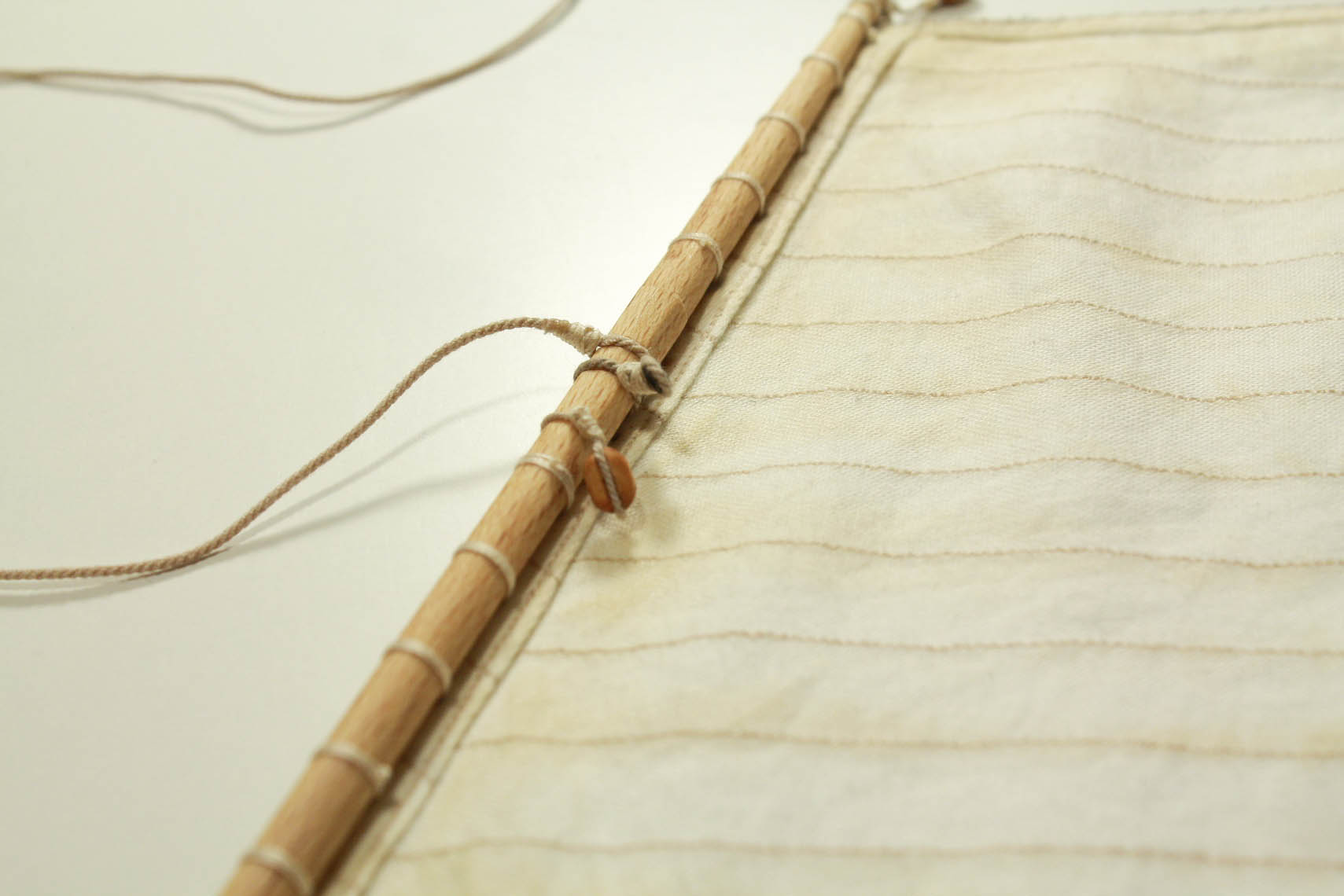 Linki dookoła przyklejone delikatnie do materiału, potem przyszyte ręcznie.