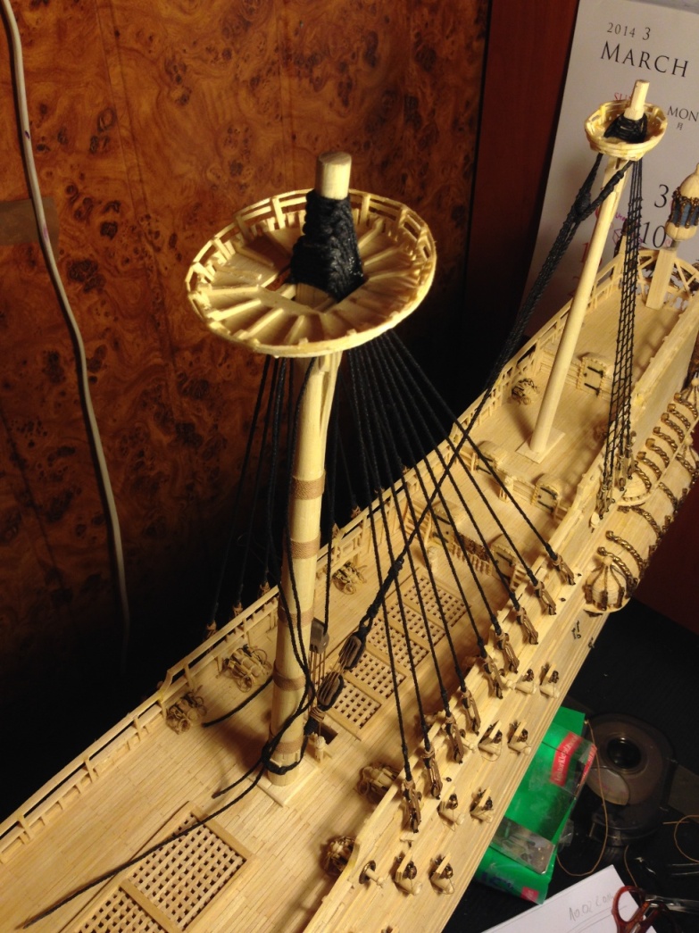 Kolejne fragmenty masztów zostały przyklejone, niedługo pojawi się kolejna część olinowania stałego.