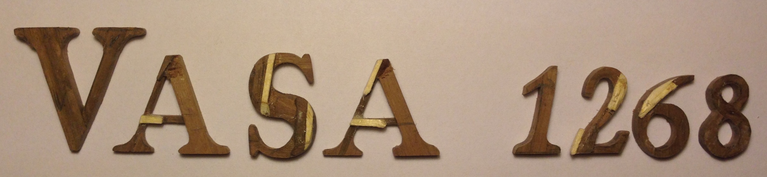 Litery są na razie "roboczo" wzmocnione w miejscach połączeń, ponieważ musiałem doszlifować ich kształt pilnikiem. Litera V celowo jest większa od ASA, cyfry wyszły moim zdaniem dużo gorzej od liter.