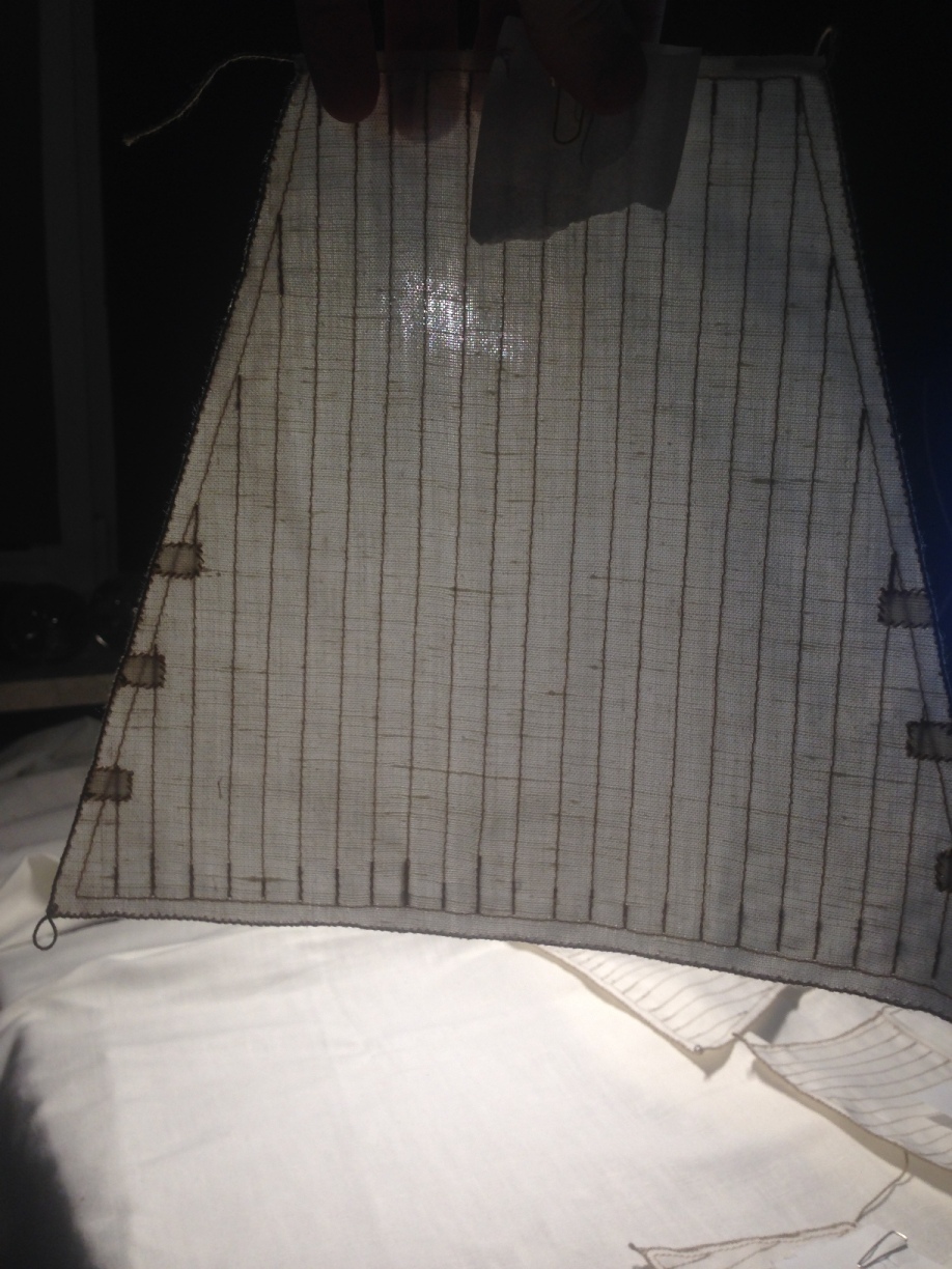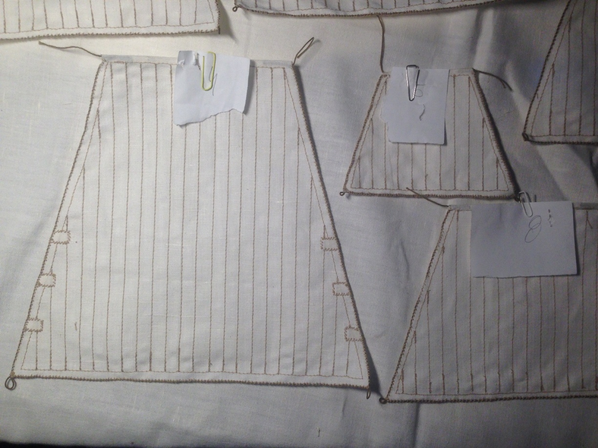 Jednak udało Mi się zakończyć walkę z podstawą ( oklejone oraz oszlifowane boki), zamontowany włącznik oraz potencjometr. Weekend w całości poświęciłem na wykonanie detali żagli, 4 największe pozostały jeszcze nieskończone. Miałem problem z ustaleniem ilości wzmocnień na żaglach, ponieważ na 2 planach jest zupełnie inaczej, zdjęcia modelu 1:10 oraz innych modeli są sprzeczne