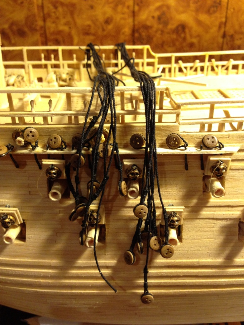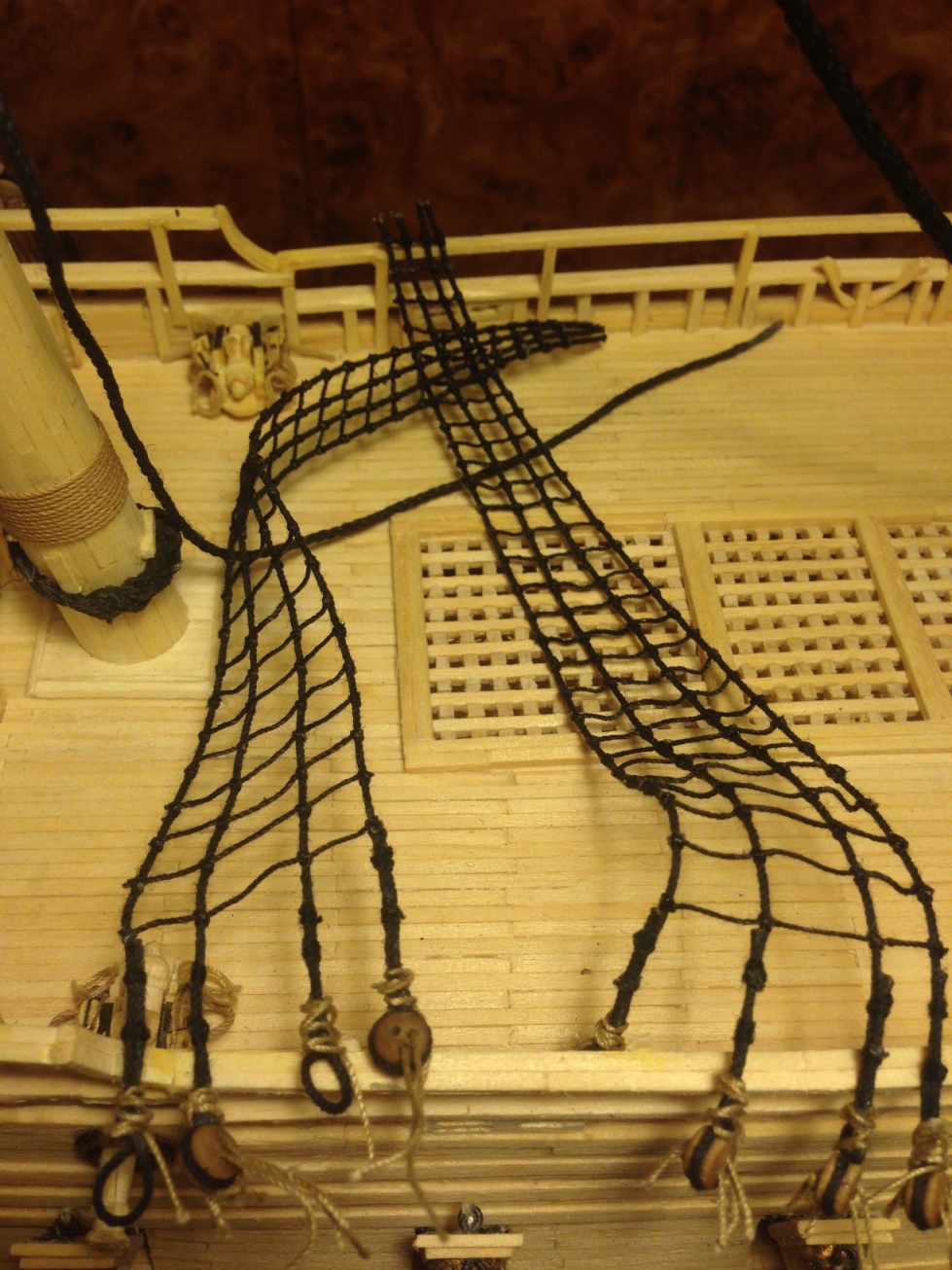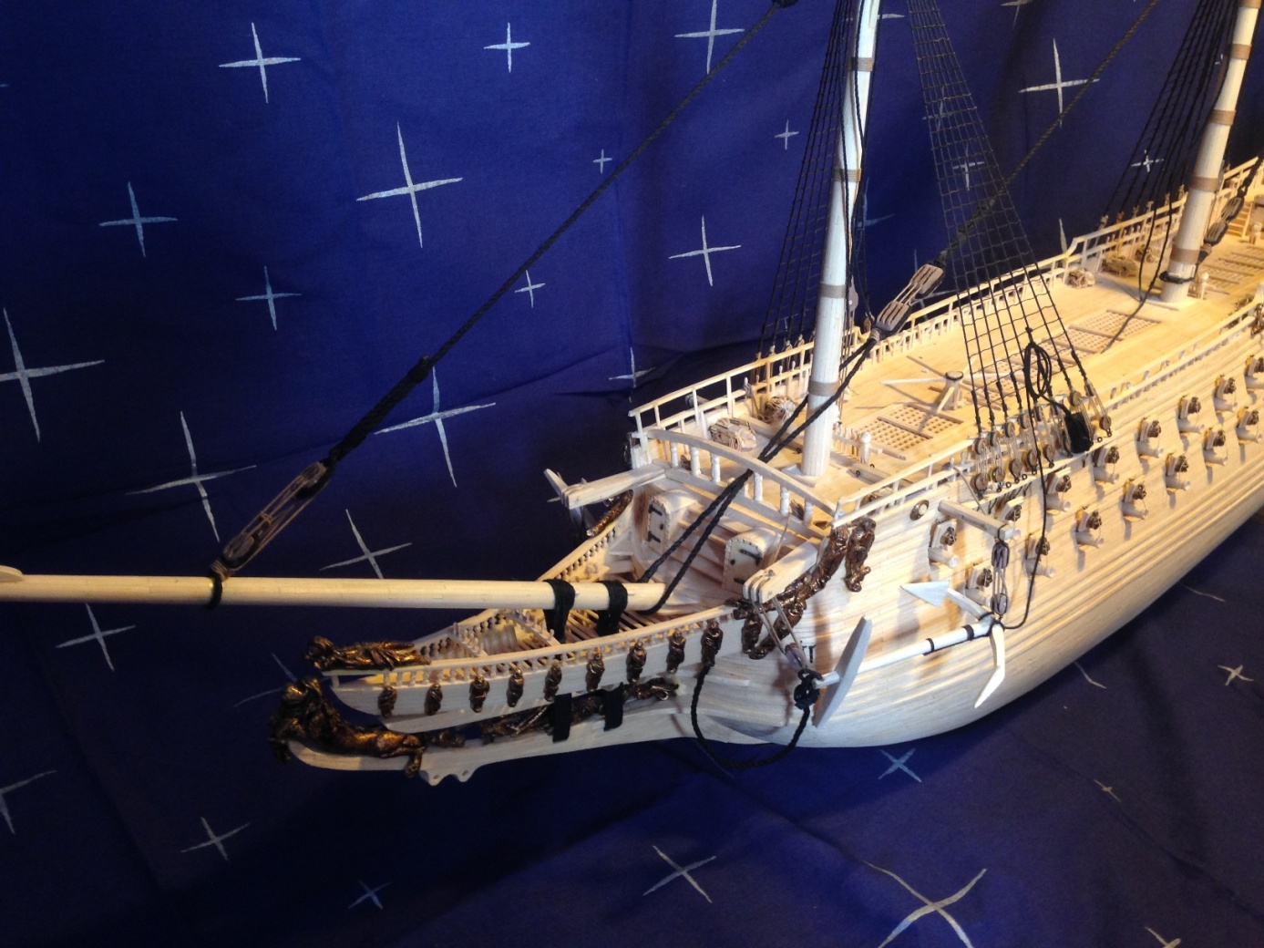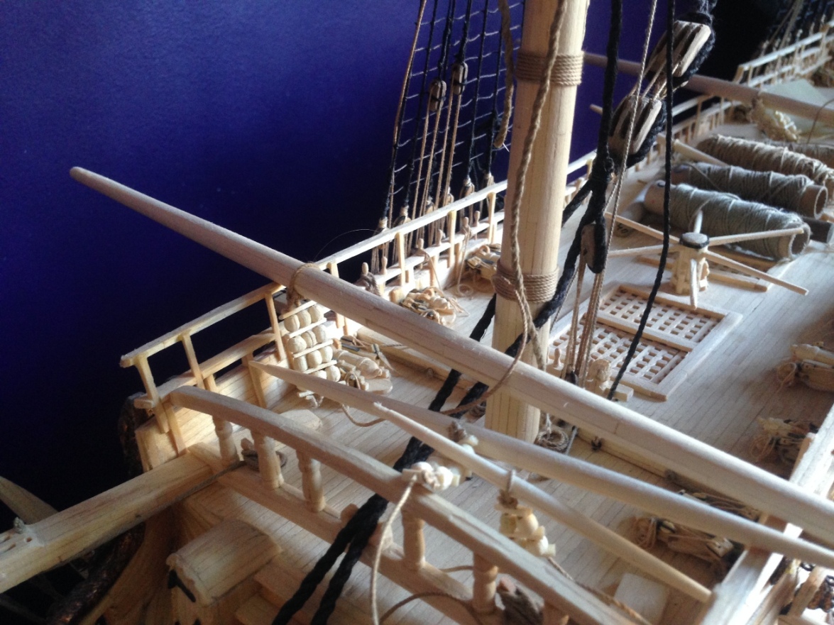 Witaj Michał. Aż trudno uwierzyć, że z zapałek można taki model stworzyć, gratulacje. A jeśli chodzi o olinowanie, to przede wszystkim musisz się postarać bardziej naciągnąć wanty. To podstawa. Same wyblinki wyglądają już nieźle, może same węzły są zbyt słabo dociśnięte. Wydaje mi się też, że widać na nich połyskujący klej CA. Osobiście używam do zabezpieczania wyblinek rzadkiego "wikolu". Poza tym gratuluję inwencji i życzę powodzenia w dalszej pracy ;) . Pozdrawiam Wojtek.