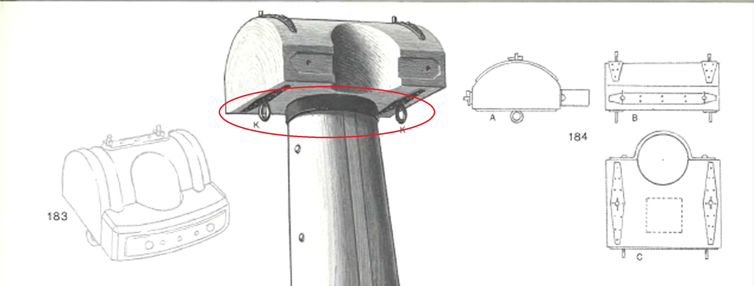 2) Jak zamontowana jest ukośna reja? Bezanmaszt posiada w sobie 1 bloczek umieszczony pod bocianim gniazdem. Materiały które posiadam do tego fragmentu to: