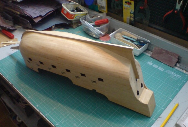 Kadłub zrobiony wg planów Mamoli skala 1:53 powiększona, o 41% czyli długość modelu 70cm.