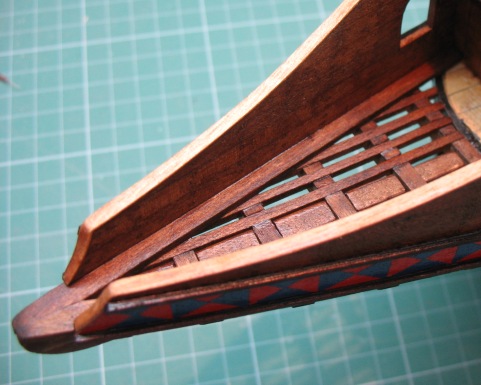 Poszycie dwuwarstwowe najpierw listewki sosnowe 2mm a następnie po przeszlifowaniu druga warstwa fornir anegre 1mm. Całość oczywiście malowana w te zakichane ślaczki ( jak ja nie lubię ich malować).