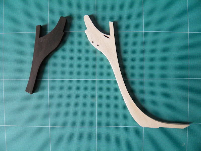 Wręgi są wycinane ze sklejki lipowej, pozostałe elementy z ichnej lipy.