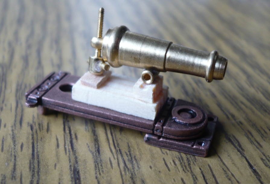 Dodatkowo przygotowuję 4 karonady (dokupione elementy Amati) - metalowe podstawy będą pomalowane na czerwono - górna pod samą karonadą już z drewna. Stan zaawansowania prac na zdjęciach.