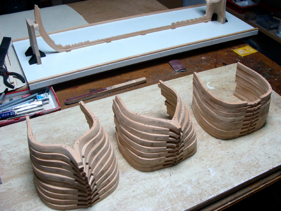Artur,dzięki.Tak zrobię.Wręgi jeszcze nie sklejone,tylko przymiarka.Będzie jeszcze przy nich trochę wiercenia pod kołkowanie.Potem trzeba będzie rozwiązać sposób ich usztywnienia przed końcowym szlifowaniem a następnie do trasowania wszystkich linii oraz wycięć w kadłubie.Ale to potem.Narazie jeszcze 6 wręg do wykonania.Pozdrawiam.Kazimierz.