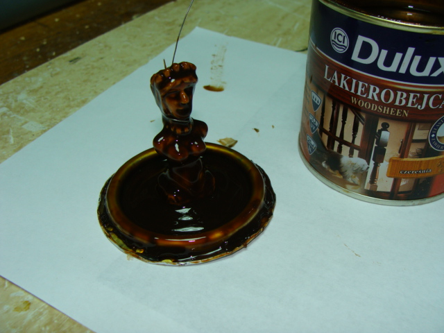 Będzie i panienka ale z cycem wstydliwie skrywanym jak na panienkę przystało.Narazie jest wzór z modeliny.Teraz muszę to przenieść na drewno.
