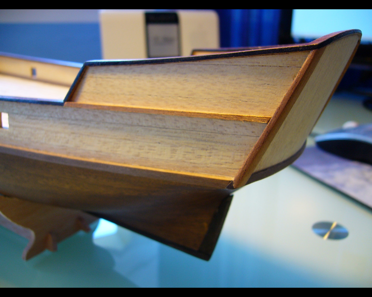 Po naprawdę udanym urlopie nadszedł czas wznowić prace przy albatrosie , druga warstwa poszycia została przyklejona całość przeszlifowałem i pomalowałem bejca ( orzech jasny) następnie lakier i końcowy efekt taki sobie . Nie będę ukrywał że jestem średnio zadowolony a swoja prace oceniam na trzy . Nie znaczy to oczywiście że się nie starałem bo całość wygląda nawet nieźle ale jest parę małych szczegółów których nie jestem wstanie w żaden sposób poprawić , a jak to mówią szkopuł tkwi w szczegółach . Zresztą zerknijcie sami