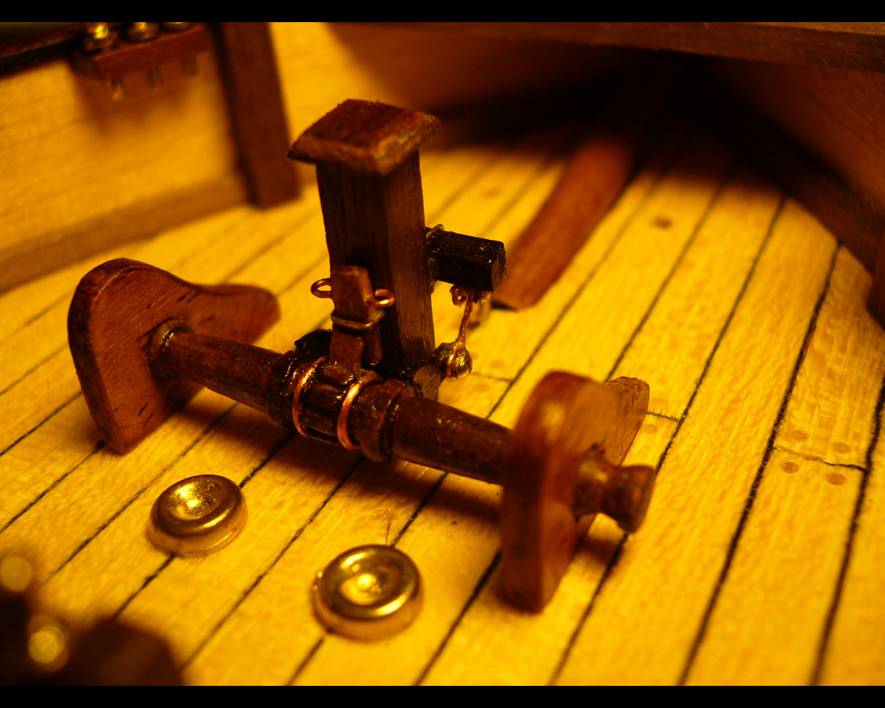 Na pokładzie w albatrosie ostatnio przybyło parę elementów niby nic wielkiego a jednak . Najwięcej problemu miałem z windą do kotwic , occre zapomniało dołożyć tego elementu do mojego zestawu , dlatego byłem zmuszony wykonać cały element samemu . Korzystając z pomocy jednego z kogowiczów udało mi się dołożyć mechanizm zapadkowy do mojej windy ,wzorcowałem się na ładniejszym mechanizmie a wyszło tak sobie ;) w tym miejscu należą się PODZIĘKOWANIA