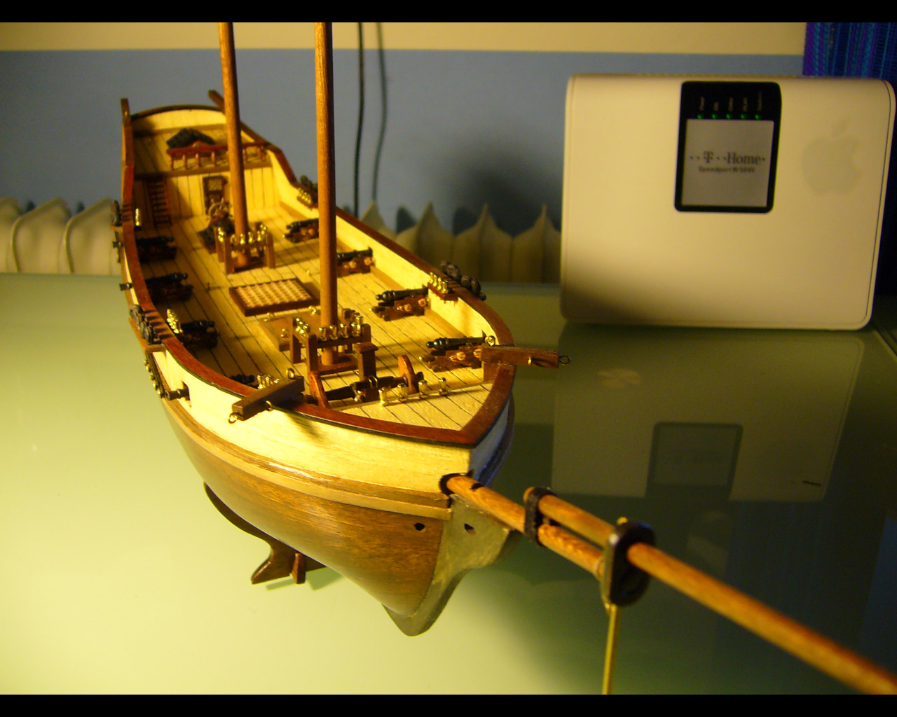 Albatros zaczyna pomału nabierać wyglądu ,w chwili obecnej pracuje nad uzbrojeniem okrętu, z elementów dostarczonych do zestawu postanowiłem wykorzystać tylko lufy , lawety wykonałem samemu z balsy . Tak wiem nie był to dobry pomysł , co wyszło dopiero w trakcie budowy , i kolejna lekcja jeśli chodzi o dobór materiału . następne problemy pojawiły się przy wykonaniu olinowania , zestaw nie przewidział takich dodatków wiec trzeba było wykonać elementy samemu według własnej koncepcji . W tym miejscu chciałbym uchylić czoła doświadczonym modelarzom którzy robią tak małe rzeczy z tak wielką precyzją . Bo dopiero próba wykonania samemu wiązania danego elementu uświadomiła mi jak dużo muszę jeszcze się nauczyć ;)