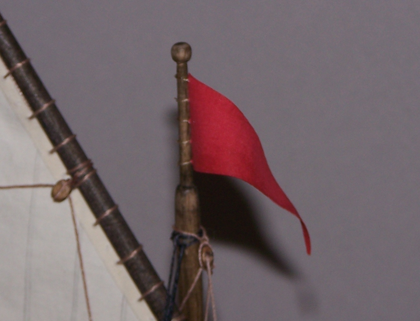 Namalowałem i zawiesiłem flagi.Materiał ten sam co na żagle i farby akrylowe .Kotwice też już na swoim miejscu.Postanowiłem że będą sobie luźno zwisać.