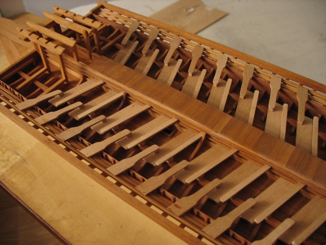 deseczki pocięte na odpowiednim sprzęcie i część elementów ławek dla galerników pomontowana