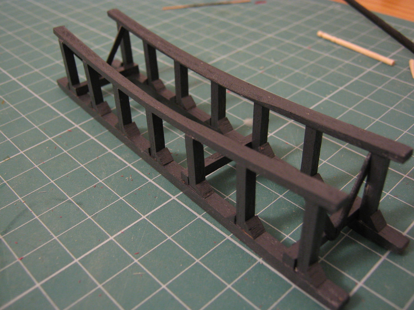 Producent założył że deski pokładu mają mieć 3mm (w rzeczywistości miały by ok 60cm szerokości). Zrobiłem z forniru bukowego 1,5mm deseczki a brzegi porysowałem ołówkiem.
