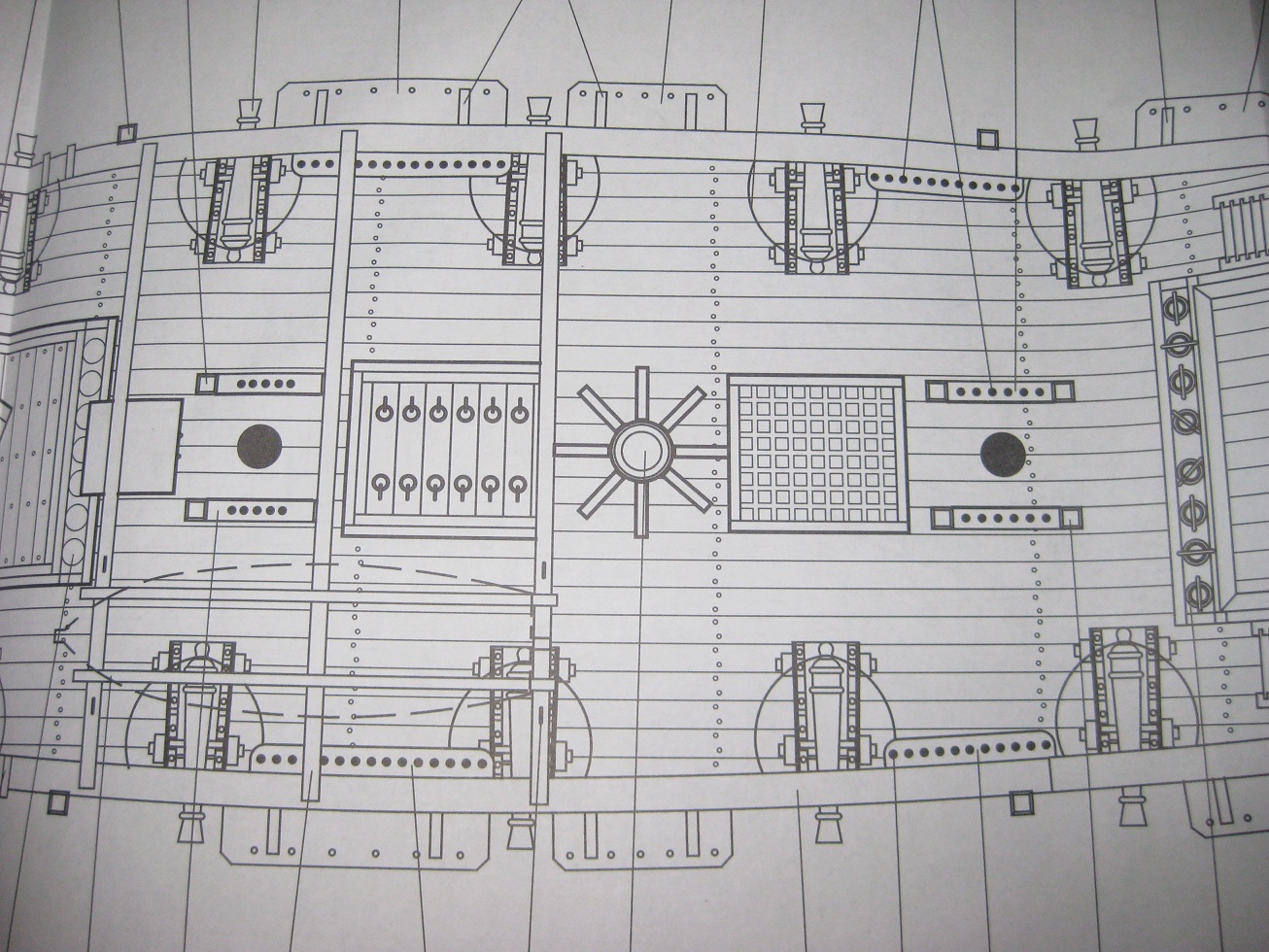 poniżej zamieszczam jeszcze fotki z planów, wyraznie widać tam że deski na pokładzie nie są dzielone, tylko idzie jedna decha przez całą długość