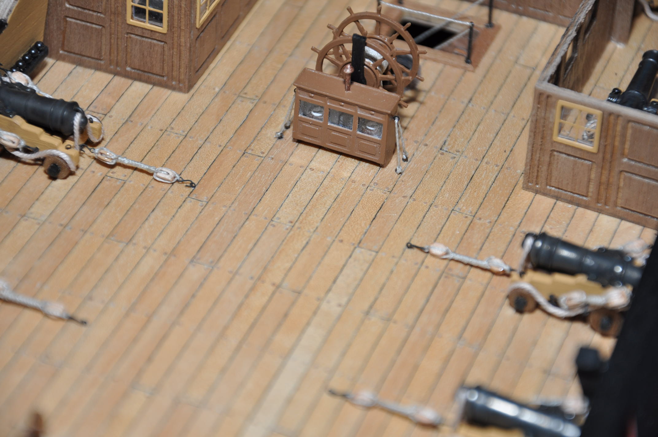 Kbuczen. Widać, że wkładasz sporo pracy i serca w ten model i efekt jest przedni. Czemu jednak pomalowałeś tą brązową farbą naktuz i koło sterowe? Czy nie lepiej byłoby wykorzystać do tego celu bejcę? W mojej ocenie ten brąz nie wygląda najlepiej. Może zechce Ci się zrobić to od nowa? Taka mała, niewiążąca sugestia