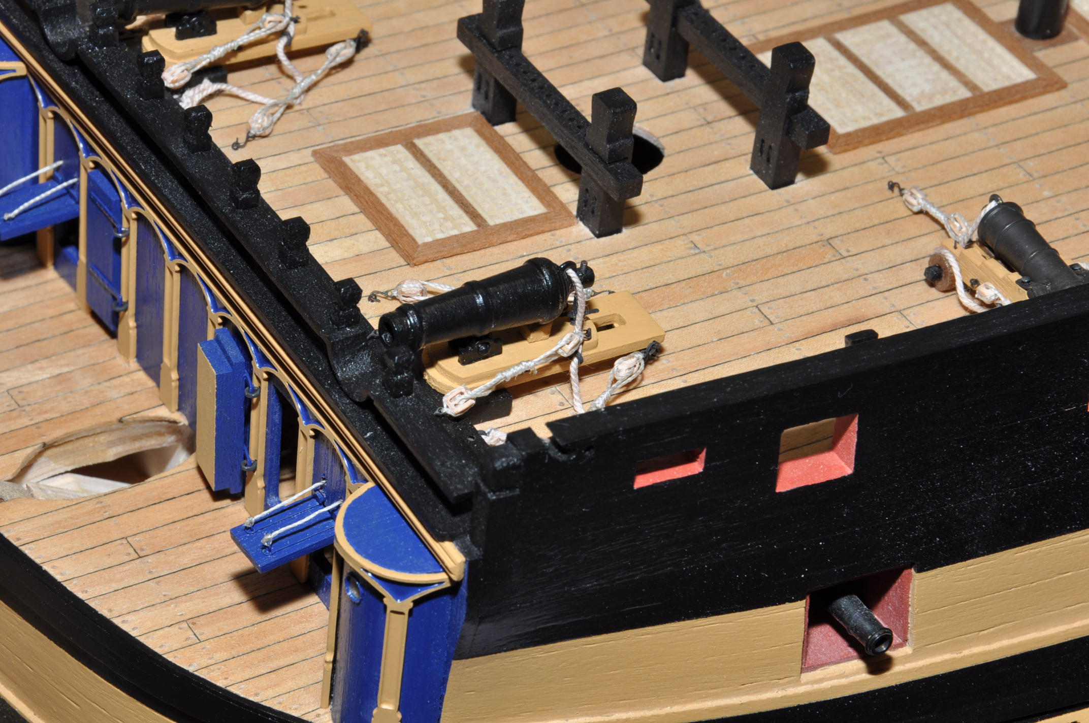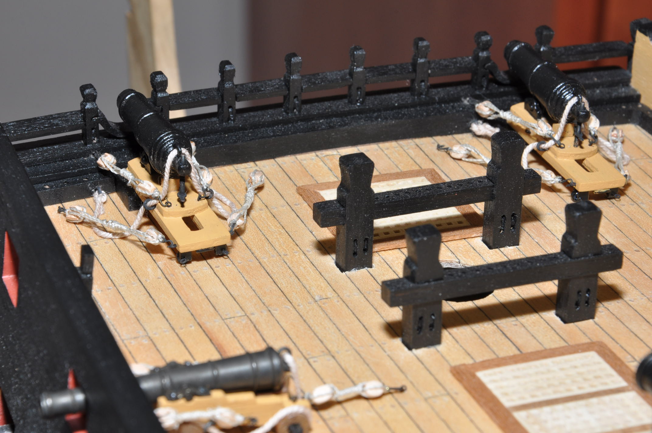 Witam . Ostatnie armaty ( tym razem karonady ) ustawione i otaliowane . Z tymi , z uwagi na niską jakość odlewu , było najwięcej problemów . Ostatecznie po kilku modyfikacjach wyglądają wg mnie przyzwoicie . Pozdrawiam .