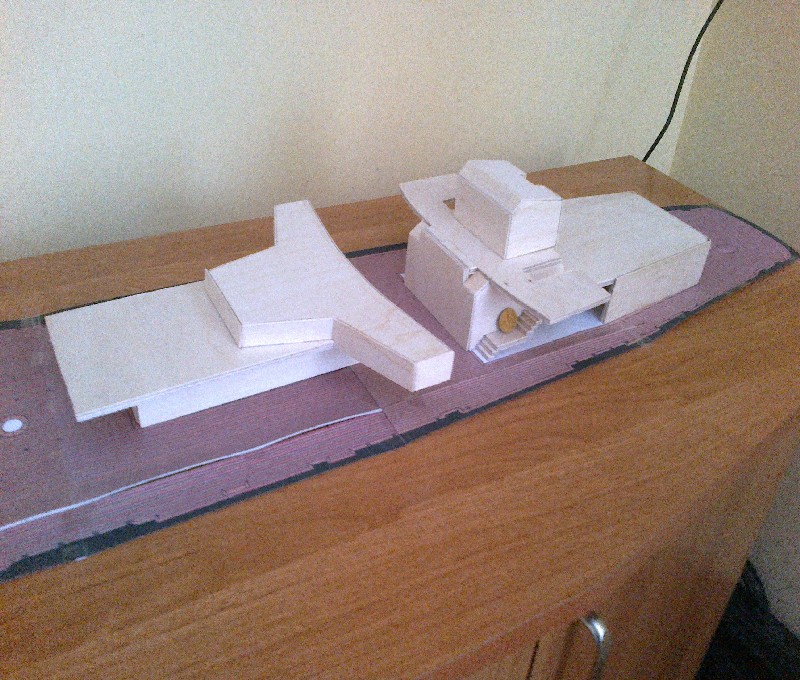 Nie bardzo mi się widzi ta nadbudówka ze sklejki, lecz masz plusa za chęci w tak nieciekawym materiale.