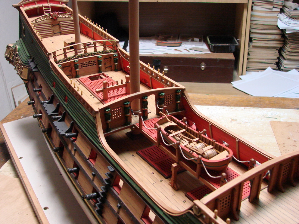 Trochę miałem dłubania przy modelu.Dorobiłem trzecią szalupę której nie będzie przeszkadzał pomost i w razie potrzeby czterech marynarzy z łatwością ją wydostanie.Tak pewnie musiało być w realu.Zamocowałem też nowy ster.Poprzedni poszedł na złom ze względu na okucia.Teraz męczę lewki bliżniaki.Jeden już wesoły,drugi nieco mniej.Zobaczymy czy wyjdą jednojajowe