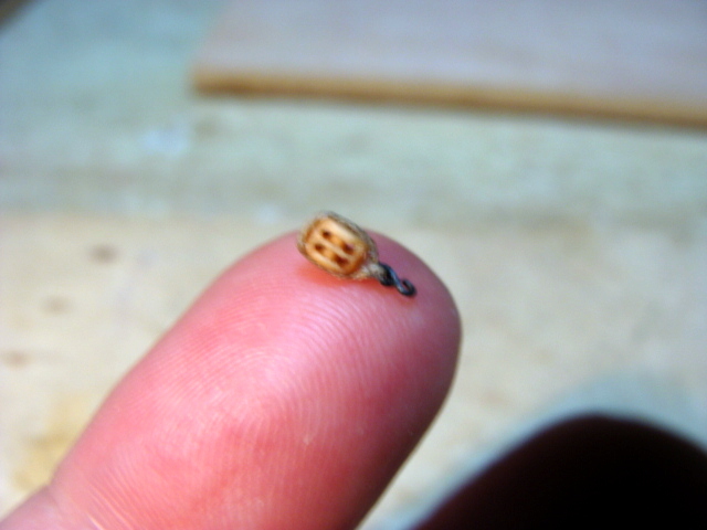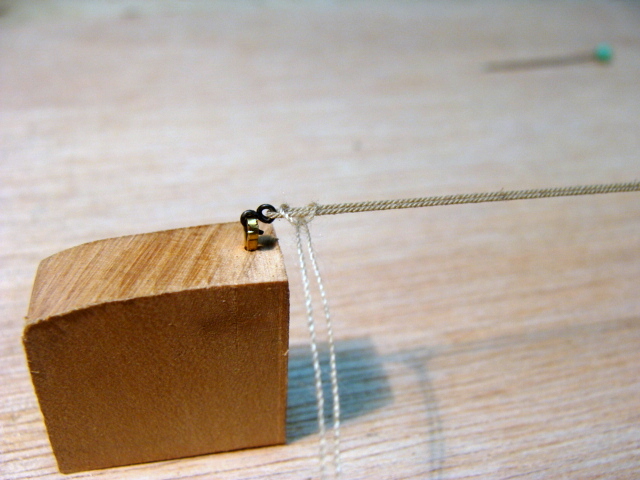Sance,ekstra dla Ciebie.Sposoby były wielokrotnie już pokazywane na forum ale przypomnieć nie zaszkodzi.Stropowanie pojedynczego bloczka zastosowałem odmiennie.Obie linki schodzą się z tyłu podklejone na C.A.i delikanie ucięte skalpelem zanim C.A.stwardniał i uformowane na styk.Miejsce sklejenia nie rzuca się w oczy.Tu nie ma żadnej filozofii.Dobre oświetlenie,okulary i wyczucie podczas przecinania linek z tyłu bloczka.Niechcący można przeciąć i bloczek i palec.Bloczka szkoda bo palec się zagoi