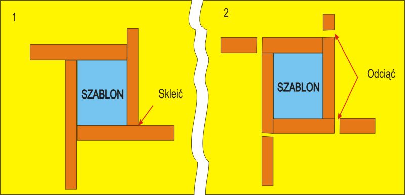Szablon i podstawę oklej taśmą samoprzylepną aby się listewki nie przyklejały.