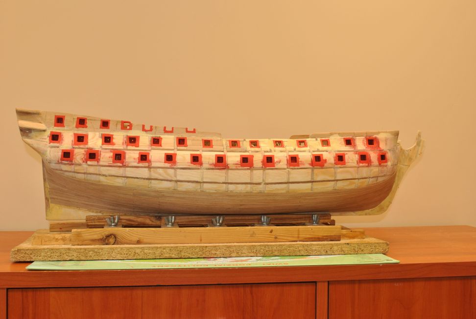 Kadłub ma ostateczny kształt. Przez krótki czas miał tymczasowe poszycie. Przyszedł czas na poszycie fornirowe i w związku z tym mam pytanie. Czy na Bellonie był felc w dolnym luku działowym.