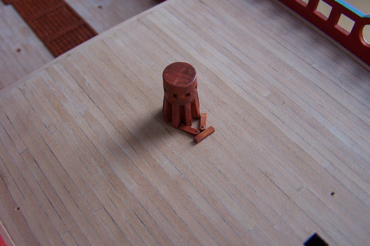 Od siebie dodałem fornirowe pokłady, kuchnię okrętową, kabestan i niektóre pachoły.