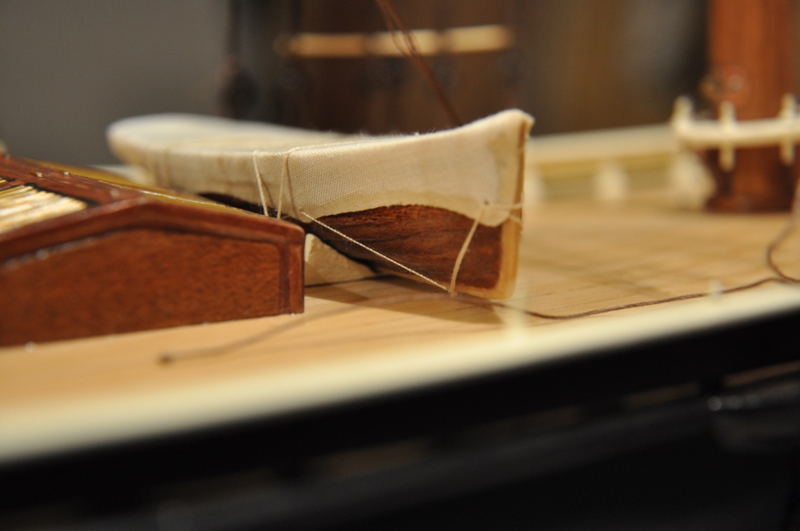 Tak.Co racja to racja. Uprościłem sobie zadanie. Trzeba pamiętać że świetlik w podstawie ma wymiary 30x35 mm. Jak tu więc rozpłaszczyć końcówki i przybić je do obudowy. Zagiąć i nawiercić - OK. To dało by się zrobić.Mogłem tak to wykonać.Zastanowię się jescze nad przeróbką.Mnie się też nie podoba jak pręty przylegaja do szyby.Przy tej skali trzeba jednak zdecydować się na jakieś uproszcenia. To jest to co kiedyś pisałem. Marzy mi się 2 metrowy szkuner, gdzie wszystkie sploty i węzły byłyby widoczne, nie mówiąc o linach. Mam marzenie postawić model, gdzie nie brakowałoby żadnej liny olinowania stałego i ruchomego.Wtedy takie pręty w świetlikach to byłaby betka.Nie mam gdzie, puki co, postawić takiego kolosa. I tak to jest. Jest jeszcze druga strona medalu - oczy. Marnie już widzę z takich odległości. Przy długim "ślipaniu" wszystko mi sie zlewa i muszę odpuścić na kilkanaście minut. Potem znowu parę godzin jest OK. Jak były oczy dobre, to człowiek latał za dziewczynami. Teraz nie widać ani co dłubiesz, ani dziewczyn.