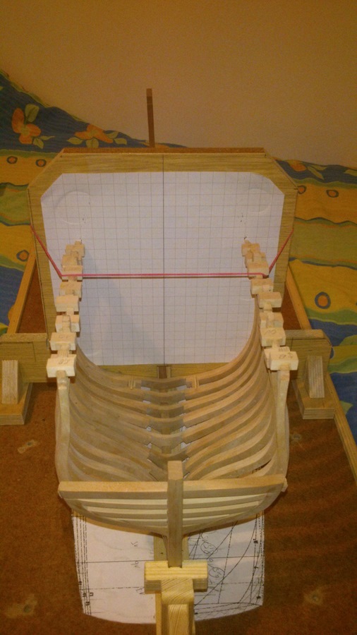 Coraz więcej wręg na swoim miejscu. Nie jest to poziom co u Kagry i Kazka ale jak na razie jestem zadowolony choć już widać że i tak czeka mnie sporo szlifowania i wtedy wyjdzie czy się udało wykonać w miare dobrze kadłub.