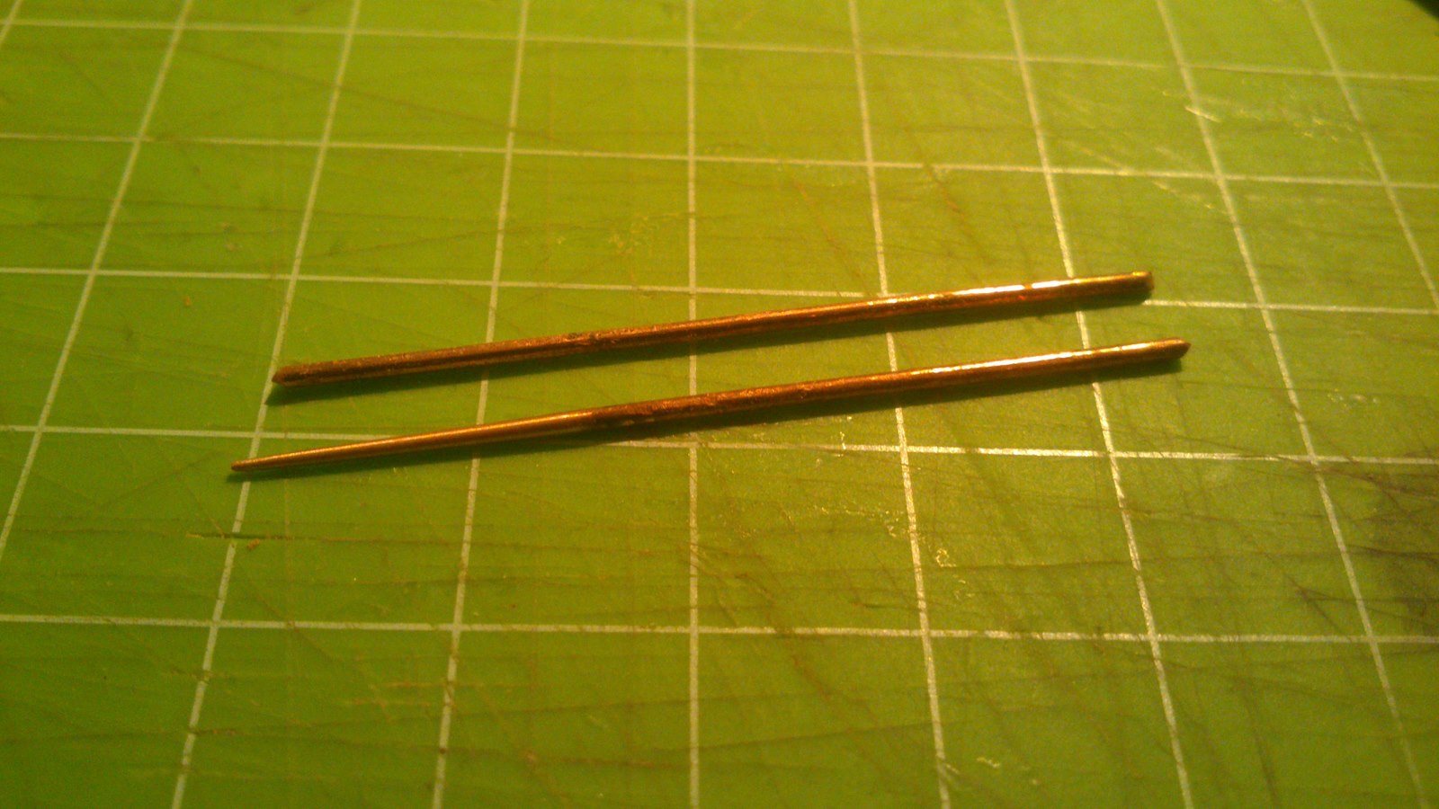 Pierw odciąłem kawałki drutu (na zdjęciach drut o śr. 1 mm do LB) następnie do szlifierki i zeszlifowałem końcówkę druta: