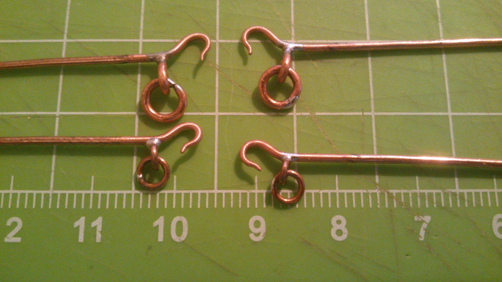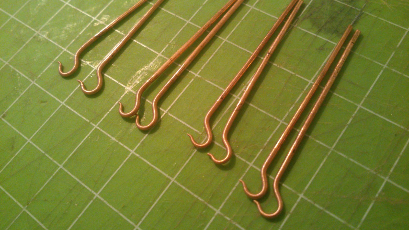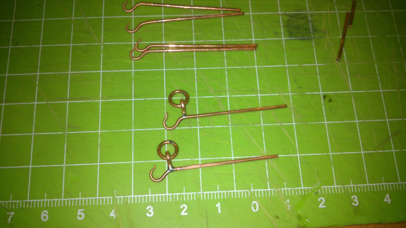 Haki robiłem od nowa i gięte były na wiertle mniejszej średnicy niż te z wczoraj a różnicy w wielkości haków praktycznie nie widać. Z cyną znowu wyszło "na bogato".