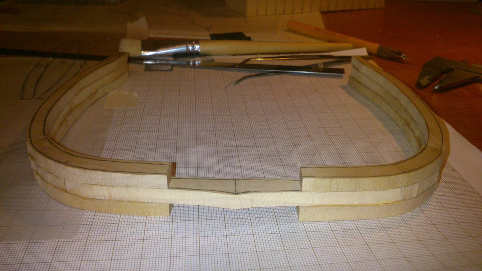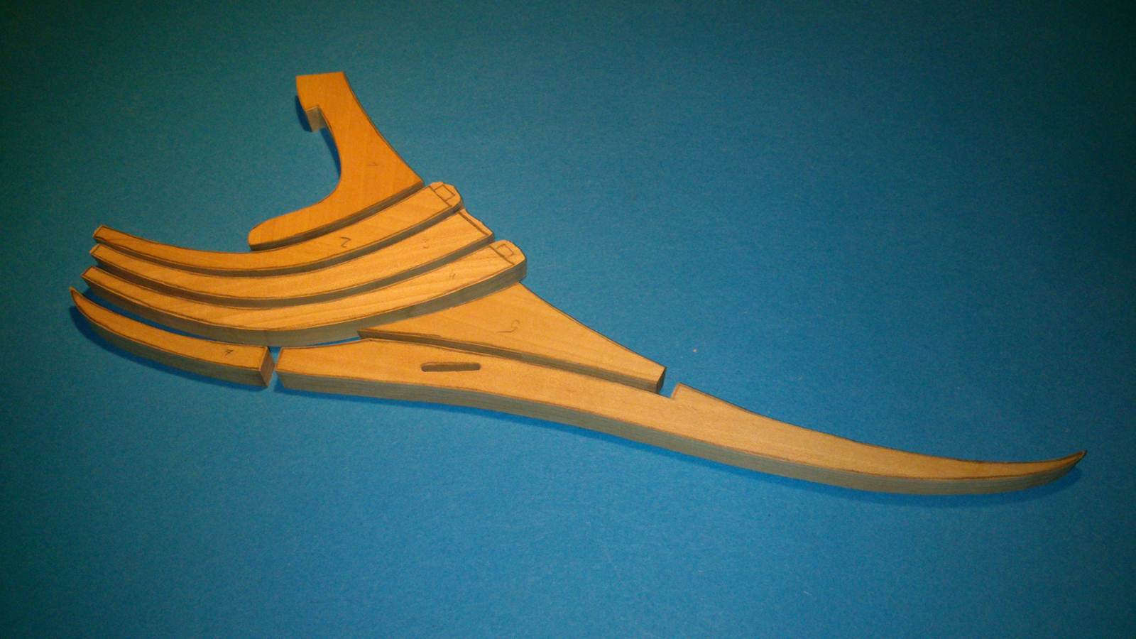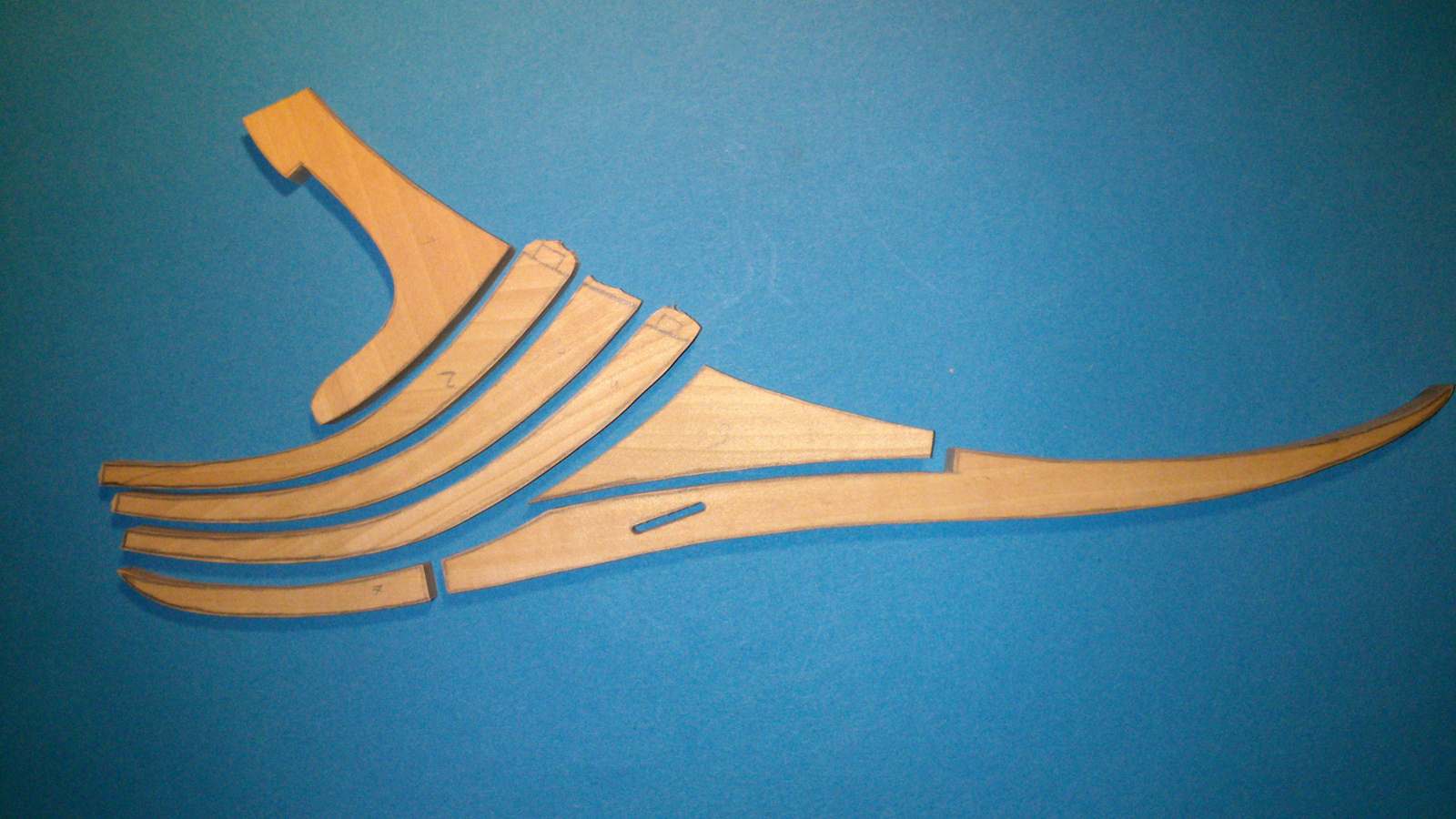 Rozpocząłem wycinanie i powolne sklejanie wręg. Na pierwszy "strzał" powstała wręga M (jeszcze nie szlifowane)