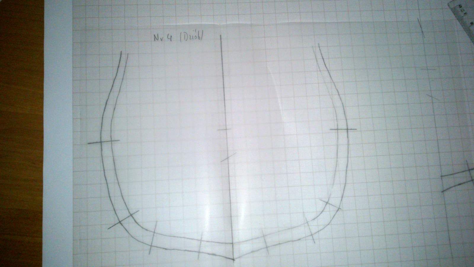 Później na bloku milimetrowym "odbijam", nanoszę ważne punkty wręgi po przeciwnej stronie jej osi i owe punkty łączę ze sobą ( chyba w tym roku na maturze będą zadania tego typu " Połącz zaznaczone punkty i napisz co Ci wyszło")