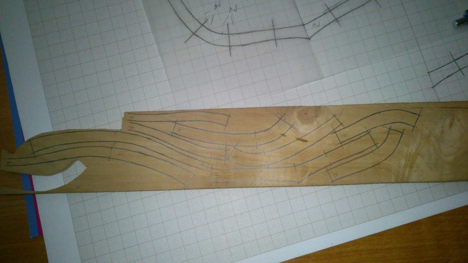Pokrótce chciałbym pokazać jak odrysowuje, jak nanoszę na listewkę i jak wycinam wręgi do LB.