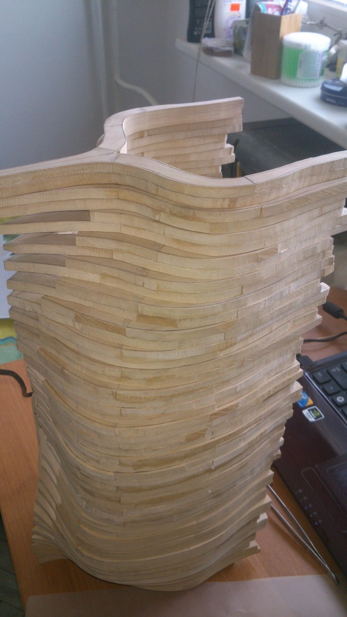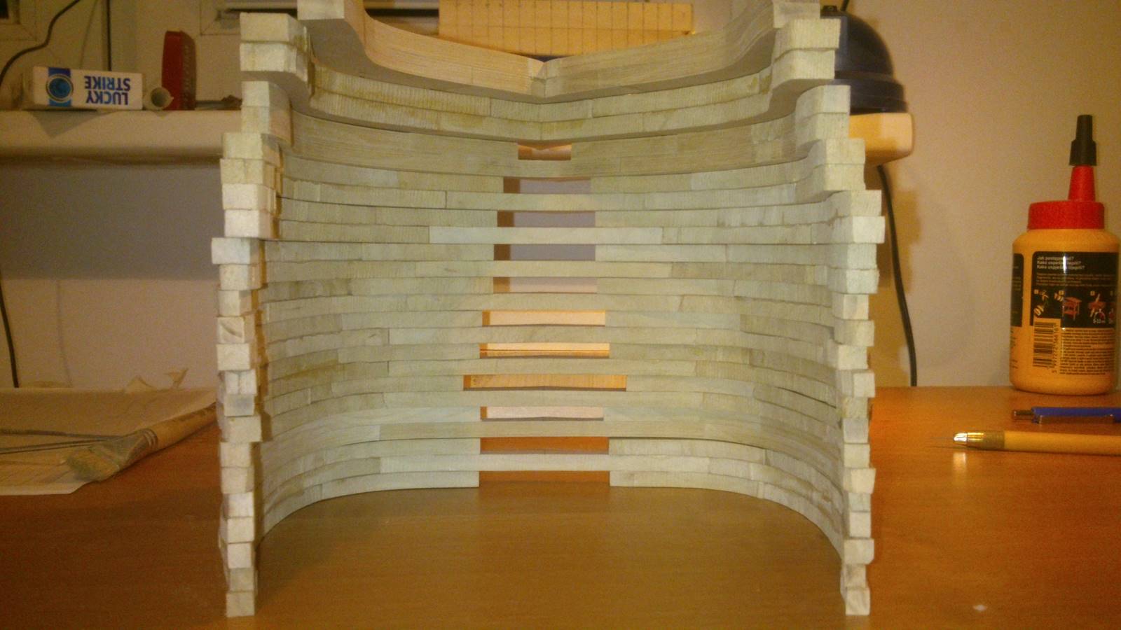 Gotowa wręga. Po sklejeniu wręgi odkładam na noc pod obciążeniem do całkowitego wyschnięcia kleju.