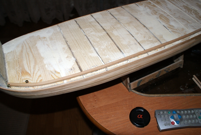 Mała dygresja.To trzeba zrobić przed poszyciem, bo potem nie dopasujesz burty w miejscu styku z pokładem.