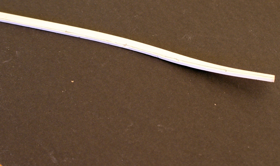 Tak wygląda listewka wygięta z zaznaczoną ołówkiem linią do szlifowania: