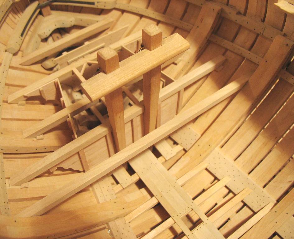 Samo owinięcie pachołów nie wystarczało do całkowitego unieruchomienia liny kotwicznej, dlatego stosowano jeszcze stopery jest to odcinek grubej liny zaczepionej na jednym końcu wokół oczka sworznia metalowego, a z drugiej zakończony w węzeł i mocowany kilkoma cieńszymi linkami do liny kotwicznej.Oczka metalowe były mocowane na dodatkowych belkach ułożonych na pokładzie przed pachołami kotwicznymi w kierunku dziobu będzie to wykonane w późniejszym czasie jak zostanie zrobiony pokład.
